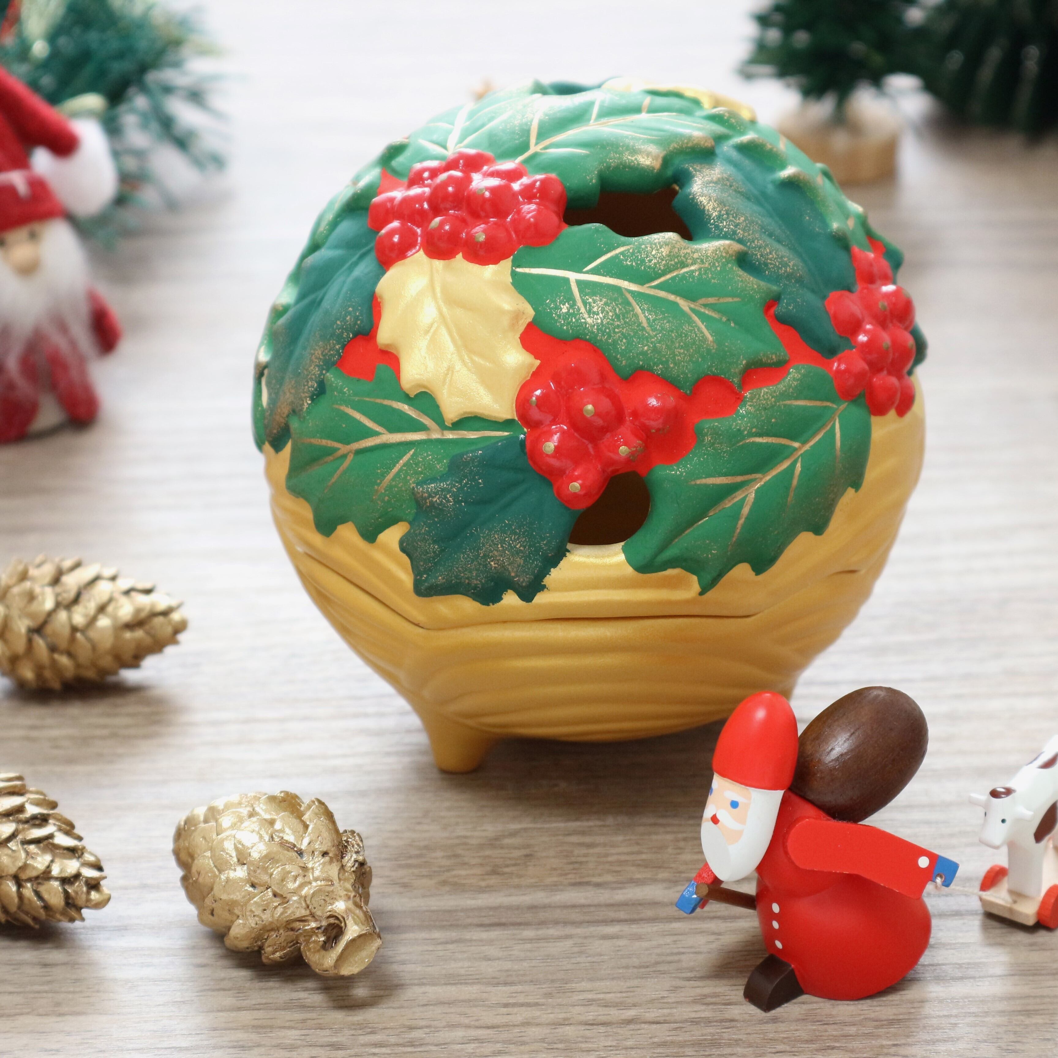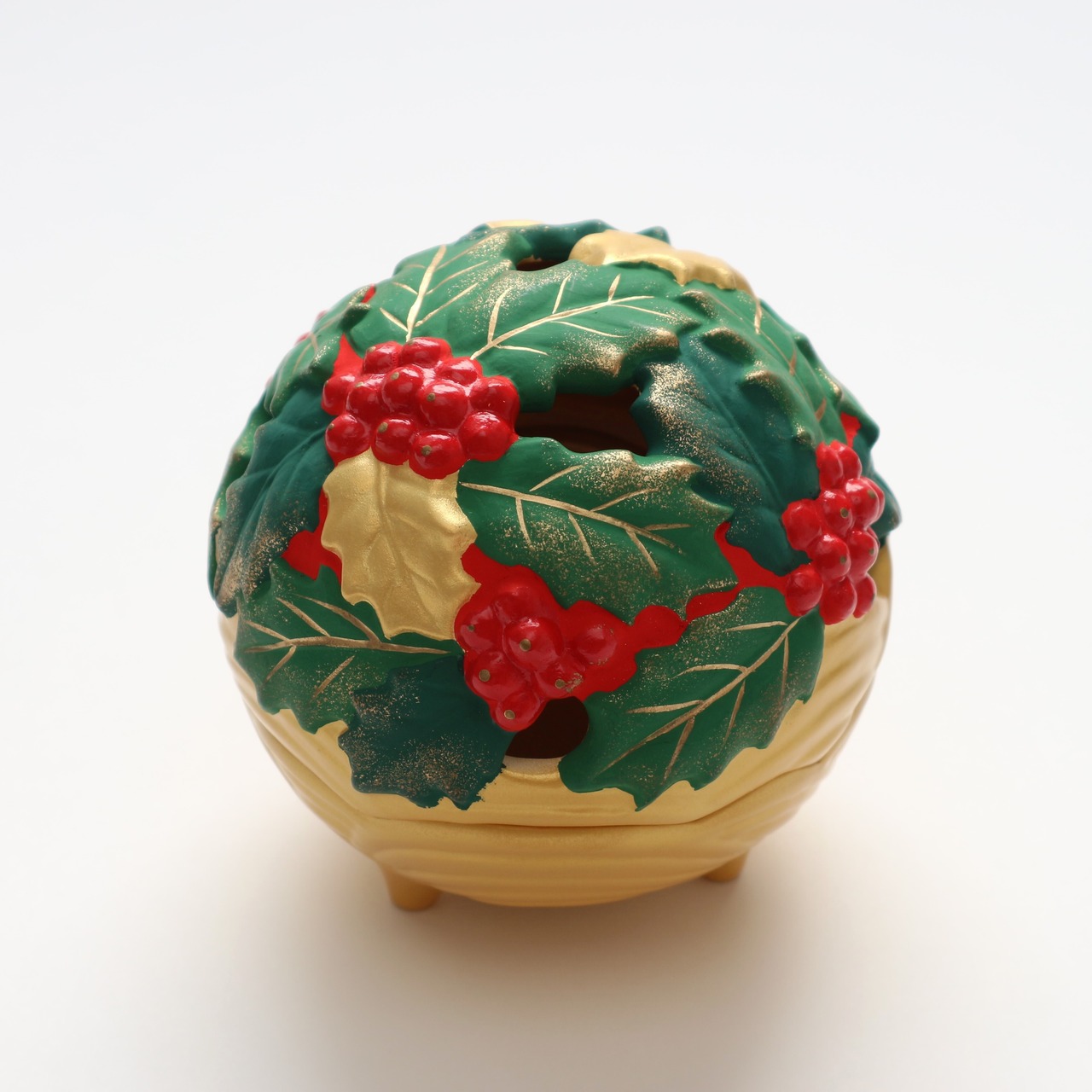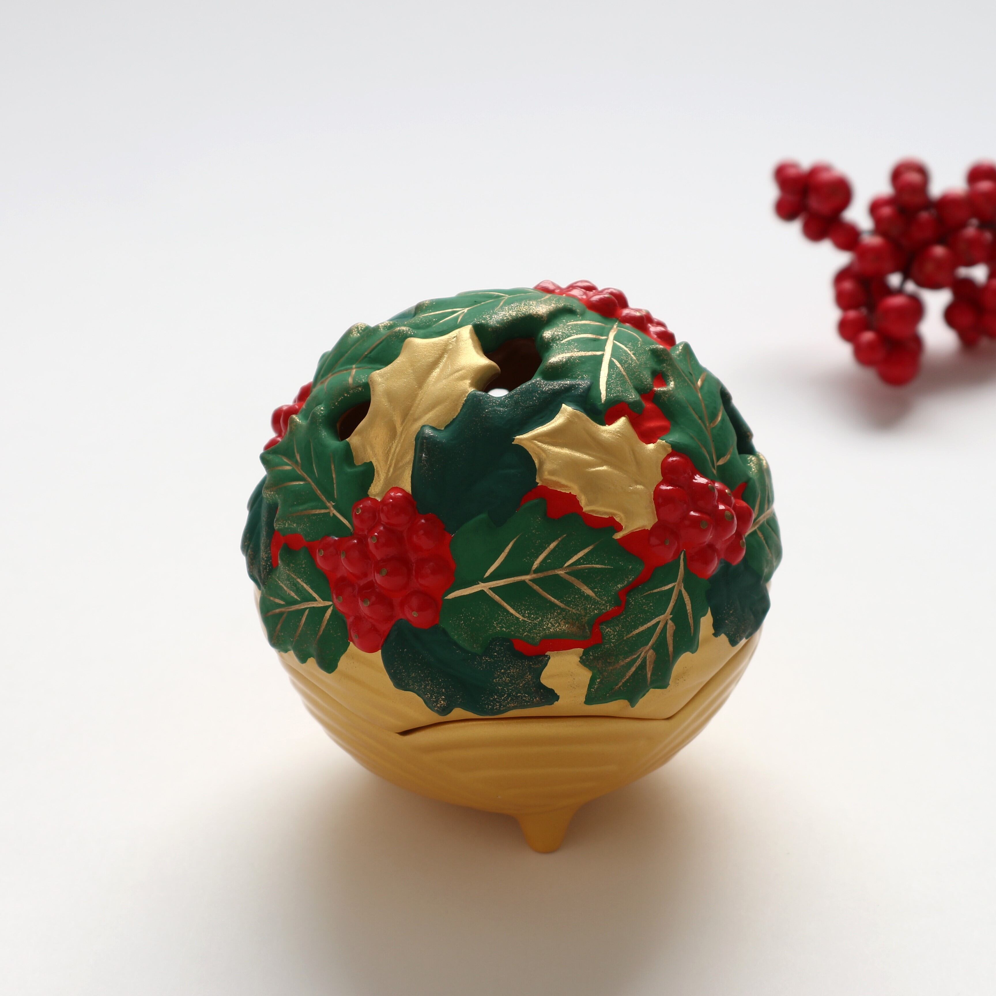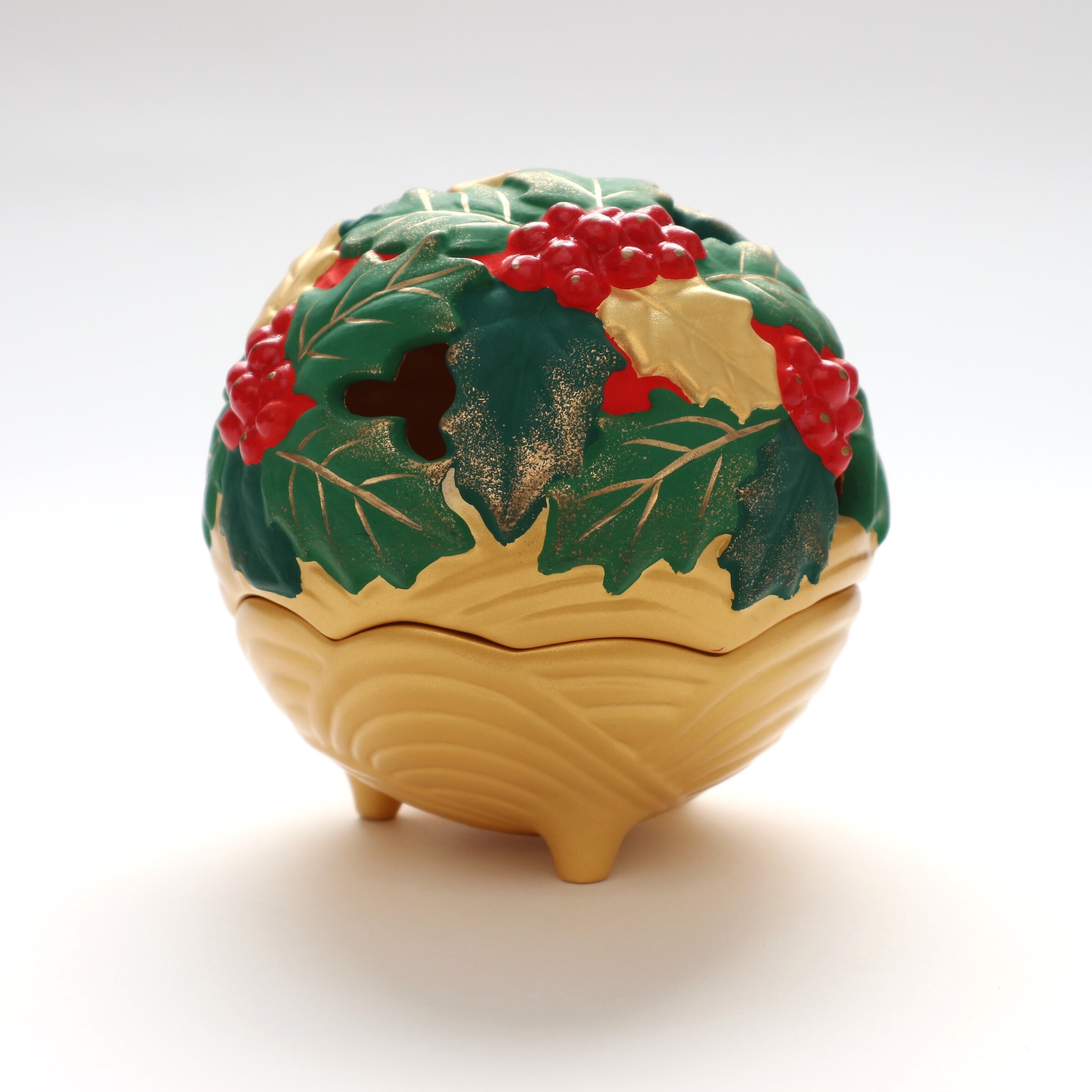 緑色の柊と赤い実・クリスマスホーリーに、金彩をふんだんに施した、清らかで心躍るクリスマスのお飾りです。