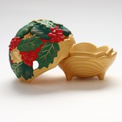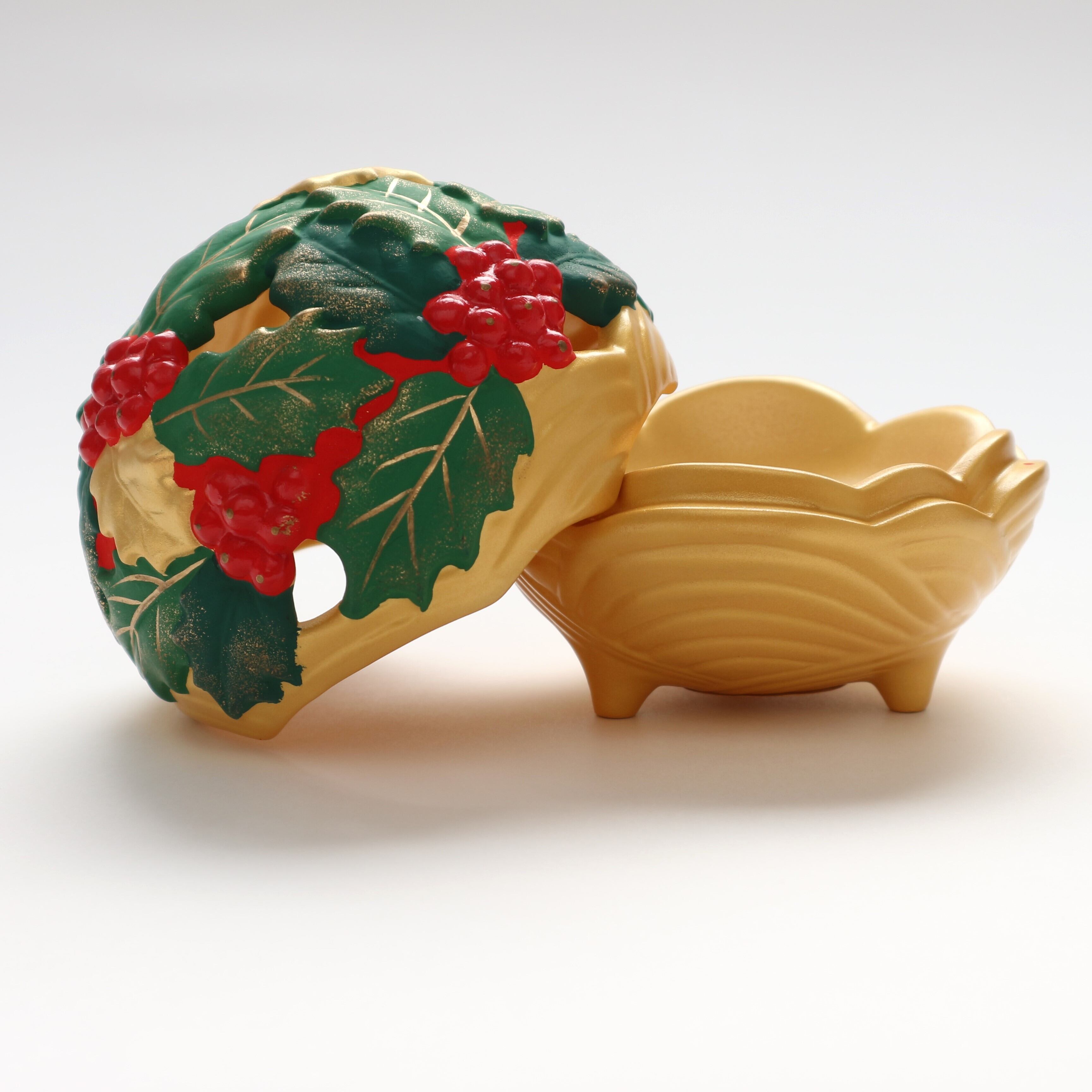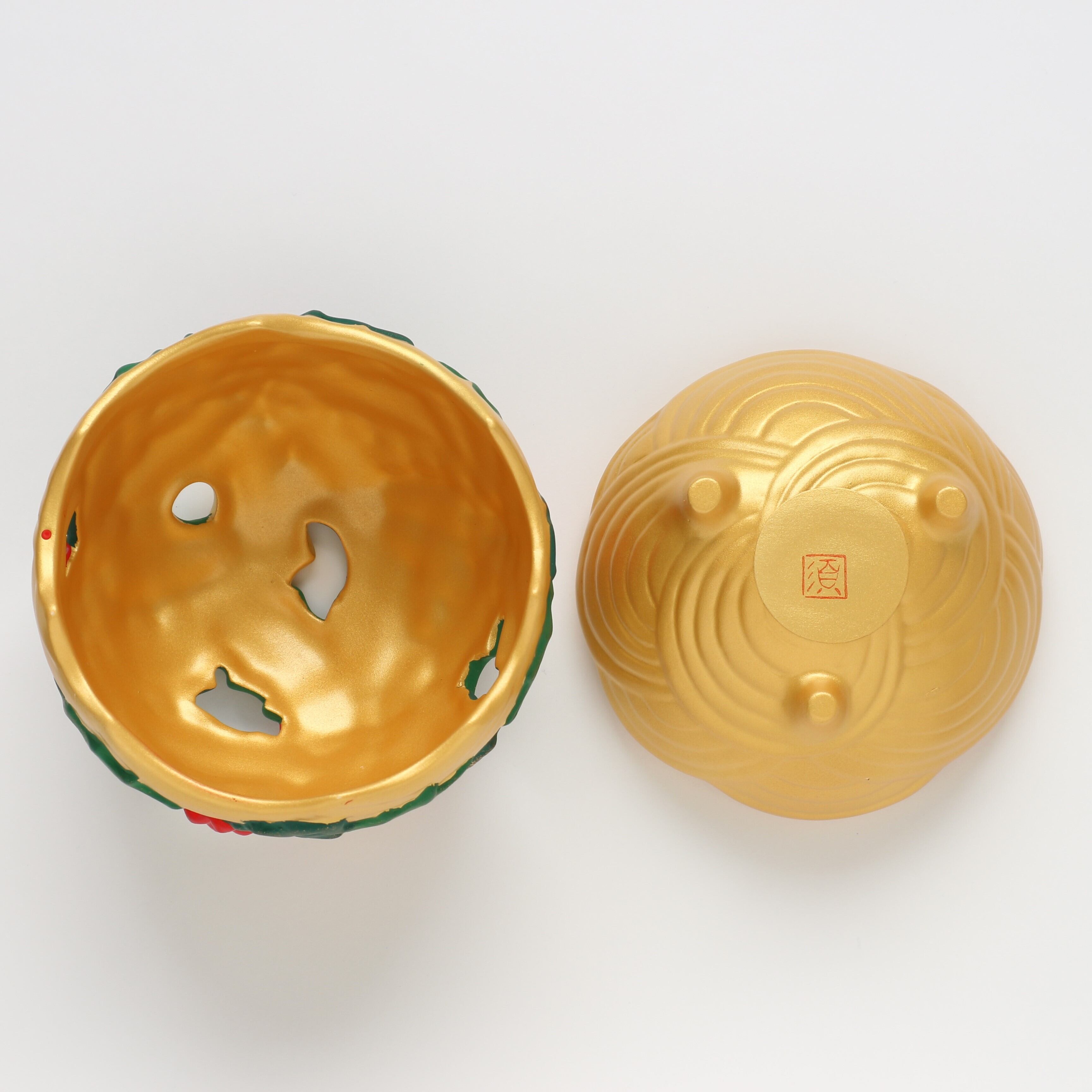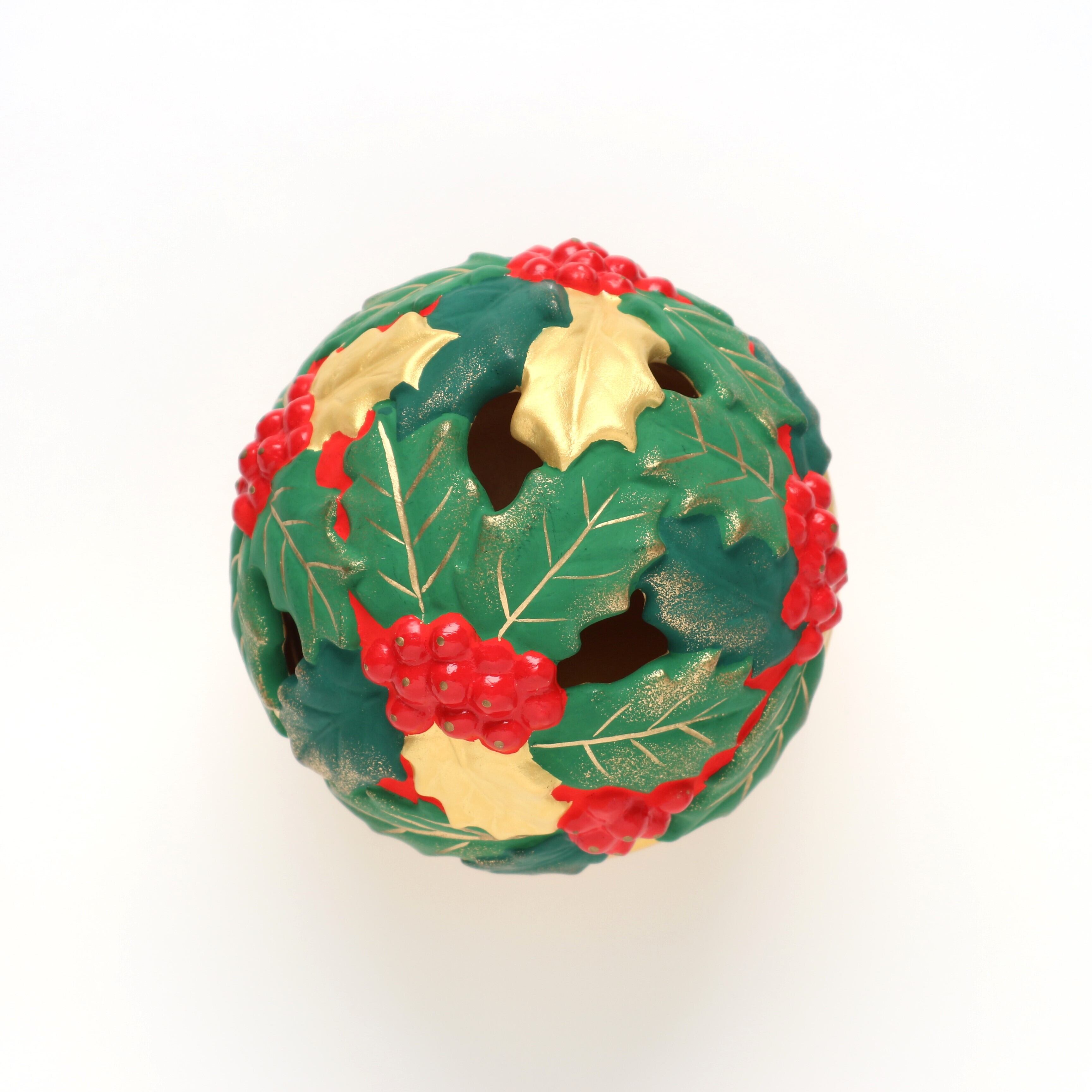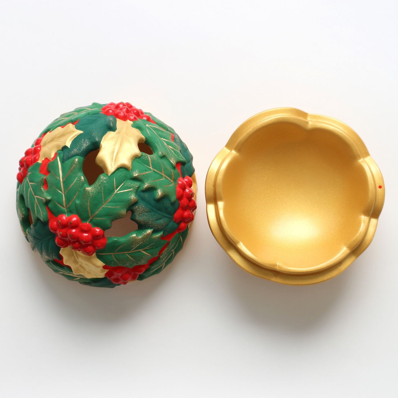 緑色の柊と赤い実・クリスマスホーリーに、金彩をふんだんに施した、清らかで心躍るクリスマスのお飾りです。